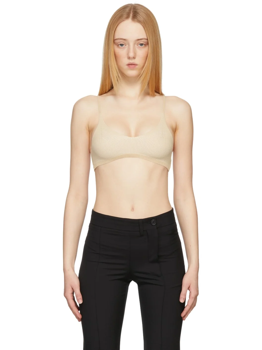 Rib knit viscose and nylon-blend bra in beige. Supplier color: Beige 80% viscose, 10% polyester, 10% polyamide. Made in Portugal 221553F073014