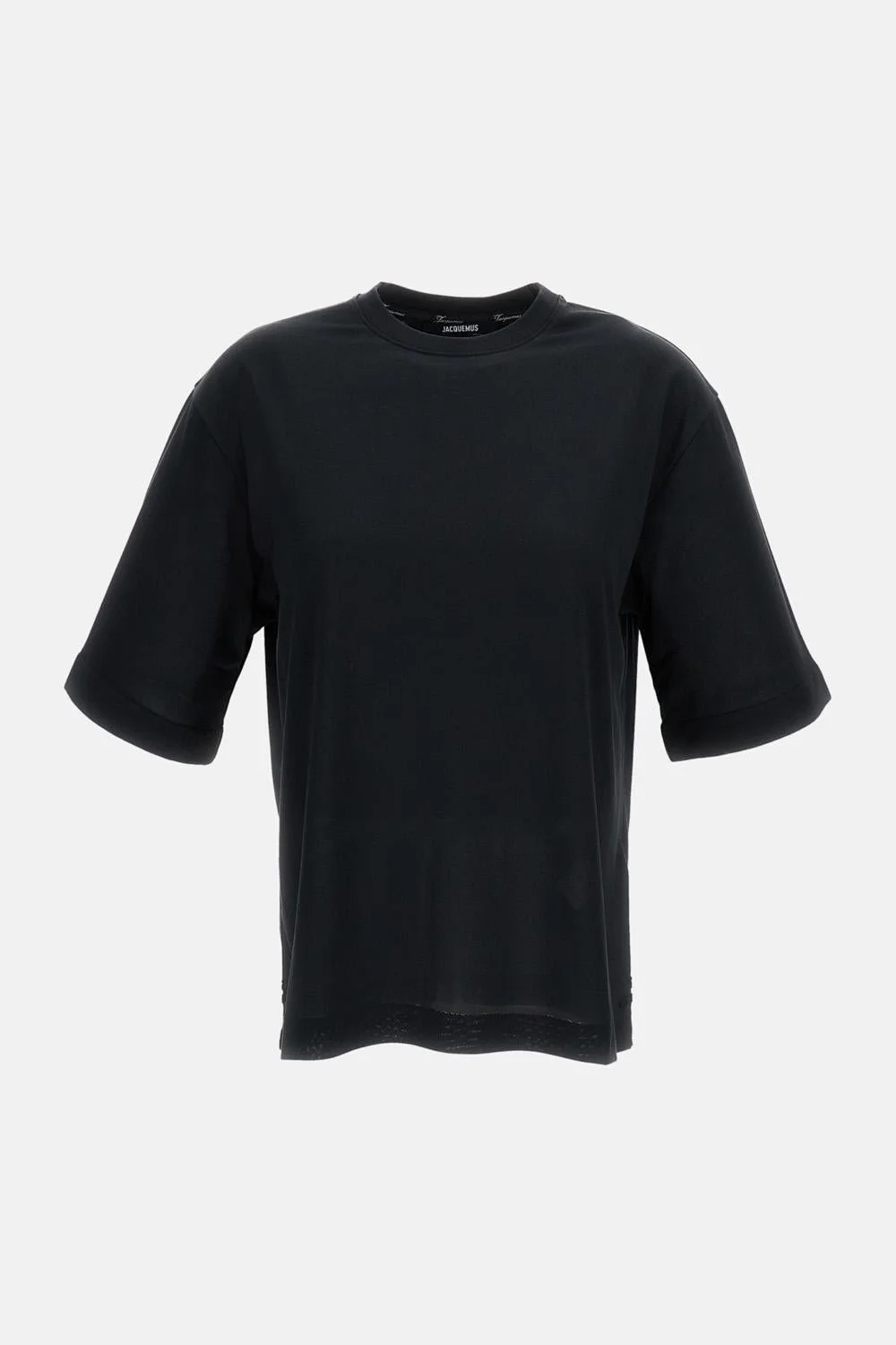 Short-sleeve crewneck T-shirt in paper-effect jersey Relaxed fit Straight cut Embroidered eyelets under the armhole Embroidered logo band inside the sleeves Side slits at the hem with embroidered logo on each side Embroidered logo label on the back Color: black Details and Care Color: Nero Composition: 57% PAPER 43% PL Made in: Portogallo Sku: TSW00588AJ00254990