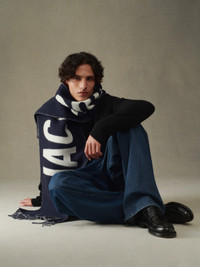 Fringe logo scarf - Wool fringe scarf - Solid color yarn - Jacquard logo - 12 cm fringe on each end - 180 x 35 cm 100% Virgin wool Made in Italy Ref. ACU00435AOT4001380
