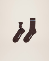 LE PAPIER Knotted asymmetric socks - Ribbed wool blend - Mid-calf and ankle height - Knotted detail on one sock - Contrast stripes - Contrast logo on the sole 90% Wool - 7% Polyamide/Nylon - 3% Elastane Made in Italy Ref.223AC425-5016-850