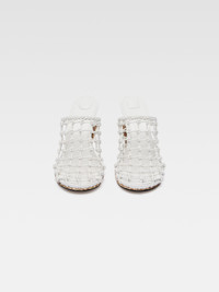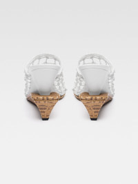 LA CROISIERE Braided double mules - Hand-woven double wedge mules in two-tone leather - Braided upper in smooth lambskin - Round toe - Bottom wedge heel in python-embossed leather - Lambskin insole and lining with circle and square cushions - Embossed logo on insole - Leather sole - Heel height: 11cm - Instep: 10cm To protect the leather soles of all shoes, a transparent protective film has been applied to each sole. To remove it, please follow the direction of the arrow in order not to damage the leather sole. 100% Lambskin / Sole: 100% Cowskin Made in Italy Ref. 251FO165-3231-1IO