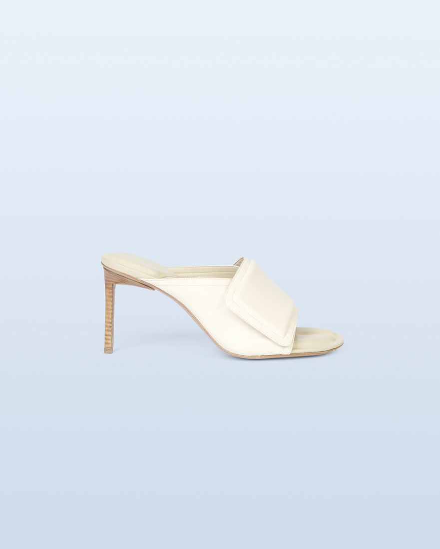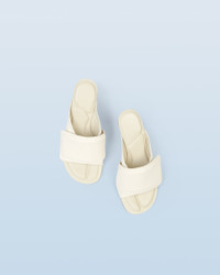 LE SPLASH Two-tone scuba slide mules - Leather slip-on sandals - Wide stitched vamp - Round toe - Embossed logo on the insole - Cushioned support padding for extra comfort - Leather sole and lining - 80mm stacked leather heel Each leather is unique and has been carefully selected by our team. Its irregularities and color variations are natural. To preserve the original condition of this piece, we recommend keeping it out of the sun and away from cosmetics, water and heat sources. It can be stored in its pouch in a dry place. 100% Leather Made in Italy Ref.221FO014-4000-110
