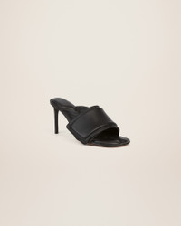 LE PAPIER Scuba slide stilettos - Leather slip-on sandals - Wide stitched vamp - Embossed logo on the insole - Footprint cushioned padding for extra comfort - Round toe - Leather sole and lining - 8 cm stacked leather heel 100% Sheepskin Made in Italy Ref.221FO014-4022-990