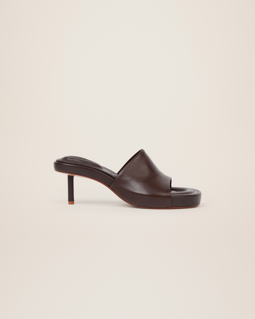 LE PAPIER Slide mules - Napa leather slip on mules - Platform - Embossed logo on the insole - Footprint cushioned padding for extra comfort - Square toe - Leather sole and lining - 5.5 cm leather heel 100% Sheepskin Made in Italy Ref.223FO035-4022-850