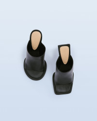LE SPLASH Geometric mules - Smooth leather mules - Square and round open toe - Embossed logo on the insole - Leather lining - Rubber sole - 75mm leather wrapped heel Each leather is unique and has been carefully selected by our team. Its irregularities and color variations are natural. To preserve the original condition of this piece, we recommend keeping it out of the sun and away from cosmetics, water and heat sources. It can be stored in its pouch in a dry place. 100% Leather Made in Portugal Ref.213FO002-4000-990
