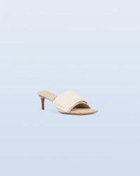 LE SPLASH Scuba slide sandals - Leather slip-on sandals - Wide stitched strap - Square toe - Embossed logo on the insole - Cushioned support padding for extra comfort - Leather sole and lining - 50mm stacked leather heel Each leather is unique and has been carefully selected by our team. Its irregularities and color variations are natural. To preserve the original condition of this piece, we recommend keeping it out of the sun and away from cosmetics, water and heat sources. It can be stored in its pouch in a dry place. 100% Leather Made in Italy Ref.221FO018-4000-110