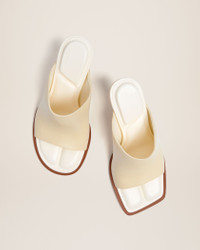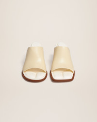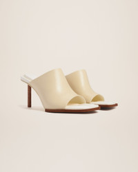 Le Raphia Asymmetrical geometric mules - Lambskin leather mules - Open square and round toe - Embossed logo on the insole - Footprint cushioned padding for extra comfort - Leather lining - Rubber sole - Plastic round and square toe cap - 75 mm heel wrapped in leather 100% Lambskin Made in Italy Ref.231FO047-3073-110