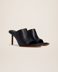 Le Raphia Asymmetrical geometric mules - Lambskin leather mules - Open square and round toe - Embossed logo on the insole - Footprint cushioned padding for extra comfort - Leather lining - Rubber sole - Plastic round and square toe cap - 75 mm heel wrapped in leather 100% Lambskin Made in Italy Ref.231FO047-3073-990