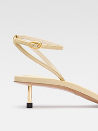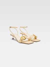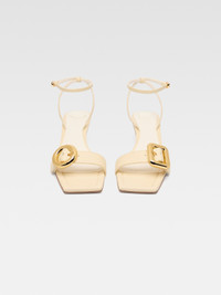 LA CASA Circle square kitten heels - Smooth leather sandals - Square toe - Circle and square metal buckles - Ankle strap with gold-plated buckle - Embossed logo on insole - Cushioned circles and square insoles - Leather sole and lining - Gold-plated stiletto heel - Heel height: 4cm 100% Calf leather / Sole: 100% Calf leather Made in Italy Ref. 243FO145-3073-120