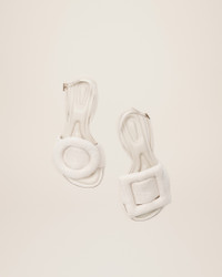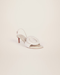 LE PAPIER Puffed geometric slingbacks - Linen and leather elasticated sling-back heels - Adjustable strap with gold square buckle - Padded faux circle and square buckles - Embossed logo on the insole - Footprint cushioned padding for extra comfort - Round toe - Leather sole and lining - 5.5 cm stacked leather heel 49% Linen - 33% Cotton - 18% Acrylic Made in Italy Ref.223FO029-3071-140