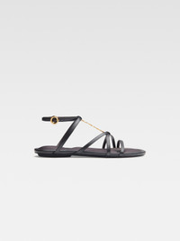 LE CHOUCHOU Charm logo flat sandals - Lamskin leather sandals - Gold metal charm logo and buckle - Round toe - Contrast cushioned padding for extra comfort - Leather sole 100% Lamb leather Made in Italy Ref.231FO056-4028-990