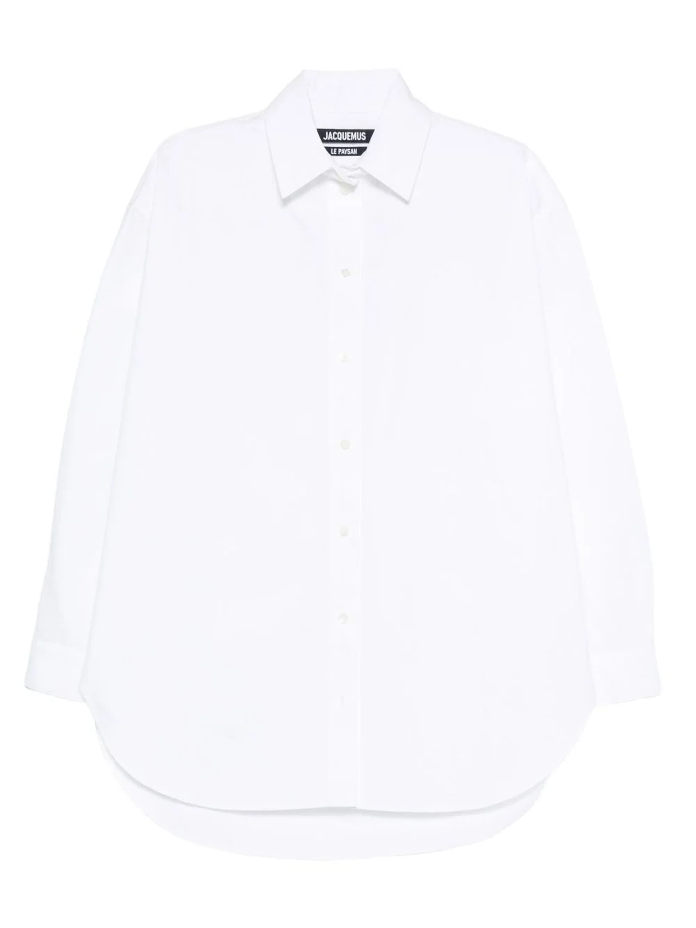 long-sleeve curved-hem shirt Highlights Made in Italy Composition Fabric 100% SIZE & FIT Model measurements Height 5 ft 9 in(1.75 m) Bust/Chest 34.64 in(88 cm) Hips 36.61 in(93 cm) Waist 26.37 in(67 cm)