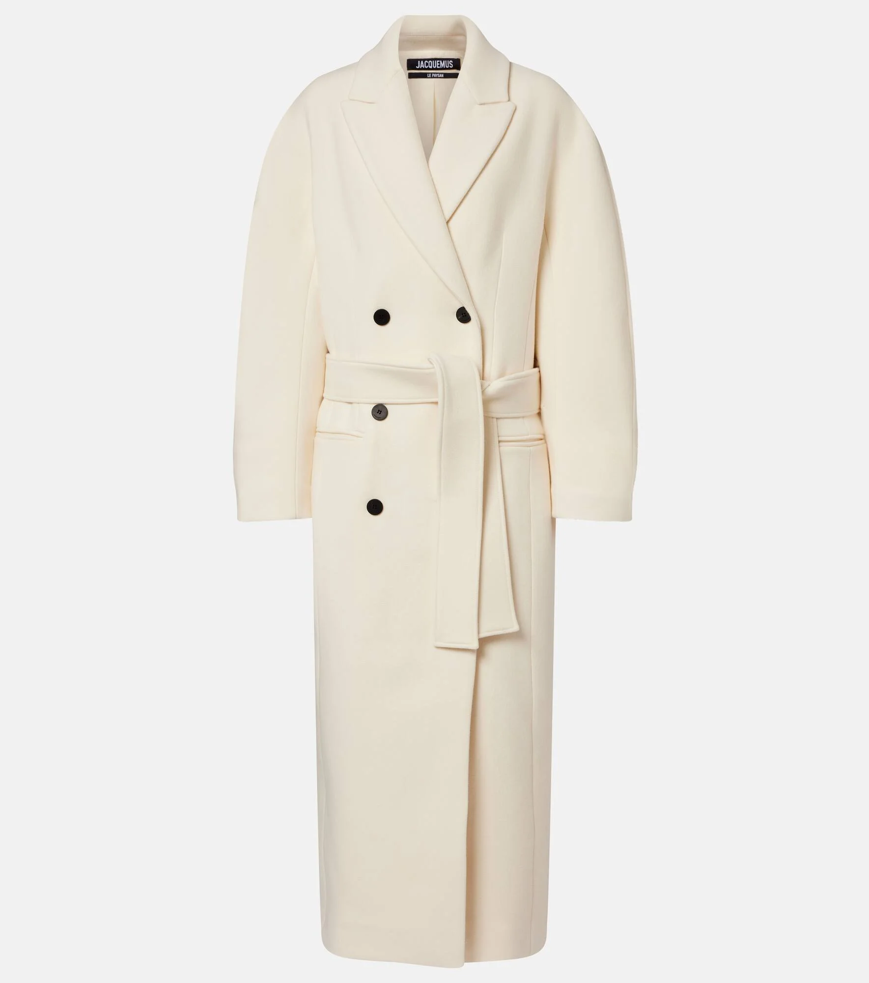 Jacquemus brings a characterful vision of French fashion to the design of every new collection. Cut to an oversized, double-breasted silhouette, the Man's coat is made from bonded virgin wool to ensure warmth. Product Details - Material: 100% virgin wool - Care instructions: dry clean - Made in Bulgaria - Color: white - Designer color name: Off-White - Lining: 52% viscose, 48% cotton - Closure: double-breasted (six buttons) - Detachable belt - Item number: P01126293 Size & Fit - Fits large to size - we recommend trying one size smaller - Shoulder pad inserts - Designed for a loose fit - Non-stretchy fabric - The model seen in the picture is 178cm-5'10" and wearing a size FR 36