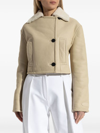 double-breasted shearling jacket Highlights - Beige - Front button fastening - Long sleeves - Two side slit pockets - Cropped Imported Composition Outer: Sheep Skin/Shearling 100% Lining: Cotton 100%