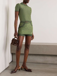 EDITORS'NOTES Jacquemus' 'Marino' shirt is cleverly jacquard-knitted with a cool geometric pattern that draws the eye. It's designed to create the illusion of layered separates and has a neat polo collar and slim fit. Wear yours with the matching shorts in our edit. SIZE & FIT Model measurements: - Fits true to size, take your normal size - Designed for a slim fit - Lightweight knit - Model is 177cm/ 5'10" and is wearing a FR 36 - Bust: 81cm/ 32" - Waist: 62cm/ 24.5" - Hip: 89cm/ 35" DETAILS & CARE - Green and black viscose-blend - Slips on - 93% viscose, 4% polyester, 3% elastane - Hand wash