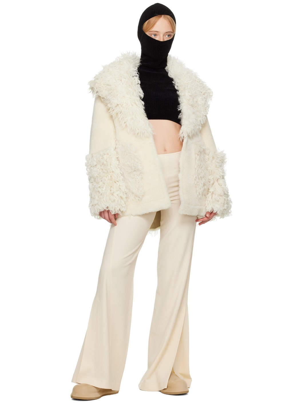 Slim-fit stretch viscose and virgin wool-blend crepe trousers. · Paneled construction · Vented extended flared cuffs · Zip closure at outseam · Belt loop at back waistband Supplier color: Off-white 70% viscose, 28% virgin wool, 2% elastane.