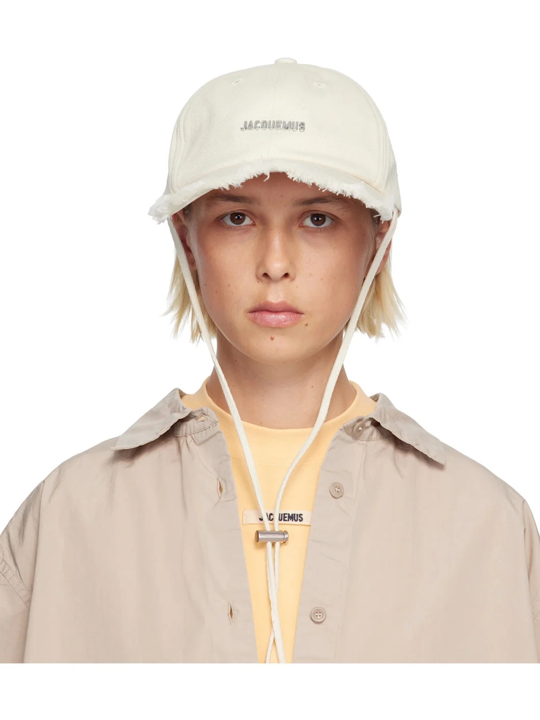 Cotton twill cap. · Embroidered eyelets at crown · Logo hardware at face · Frayed edge at curved brim · Cord-lock chin strap · Cinch fastening · Logo-engraved silver-tone hardware Part of the Les Classiques collection. Supplier color: Off-white 100% cotton. Made in Bulgaria 252553F016001