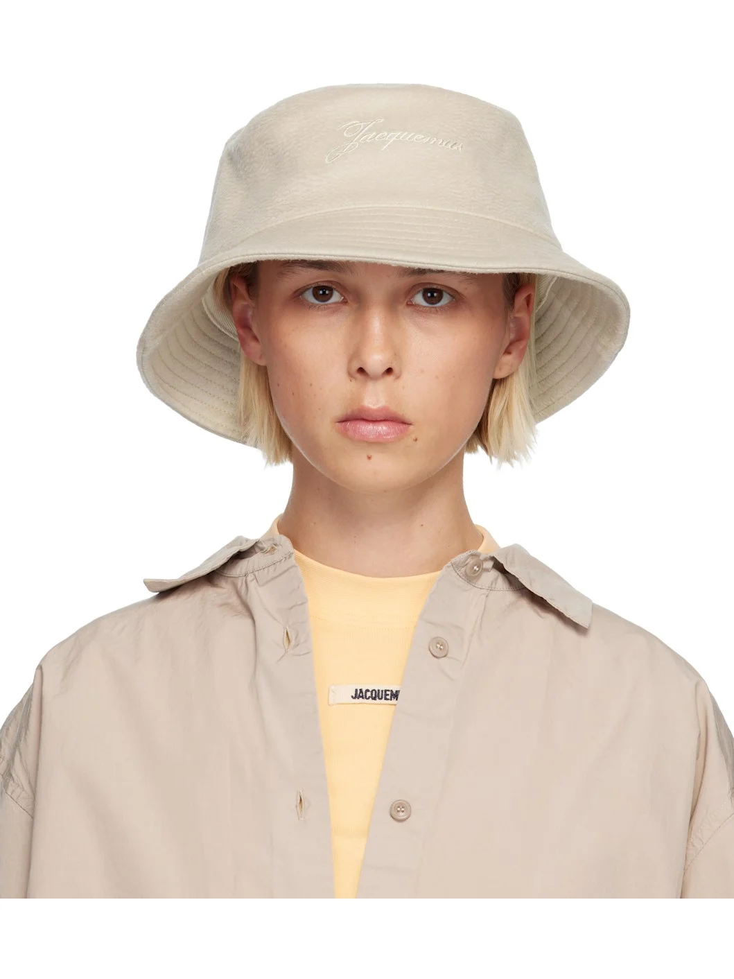 Virgin wool melton bucket hat. · Logo embroidered at face · Quilted brim · Cotton poplin lining Supplier color: Light beige Body: 100% virgin wool. Lining: 100% cotton. Made in Bulgaria 252553F015011