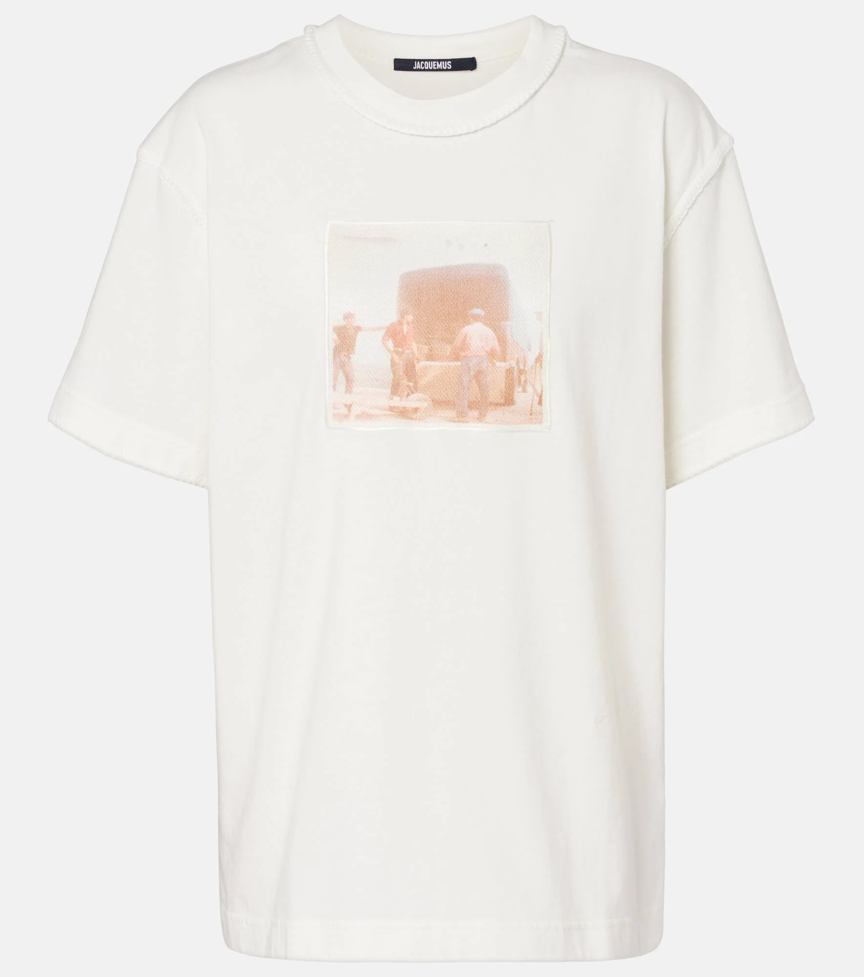 Jacquemus brings a characterful vision of French fashion to the design of every new collection. The Paysan T-shirt is crafted from cotton jersey and features a vintage-inspired photo print. Product Details - Material: 99% cotton, 1% polyester - Care instructions: machine wash at 40 degrees - Made in Portugal - Color: white - Designer color name: Old Labels Photos - Collar: crewneck - Item number: P01126373 Size & Fit - True to size - Designed for a loose fit - Slightly stretchy fabric - Falls below the hip - The model seen in the picture is 178cm-5'10" and wearing a size XS