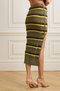 EDITORS'NOTES Jacquemus' affinity for bold colors captures the eponymous designer's <i>joie de vivre</i>. This cutout skirt is made from striped seersucker and is designed to hug your figure. Add one of the brand's signature bags in a complementary hue to your NET-A-PORTER Shopping Basket. SIZE & FIT - Fits true to size, take your normal size - Midi-length, designed to be worn at the waist - Lightweight, stretchy fabric - Model is 177cm/ 5'10" and is wearing a FR 36 DETAILS & CARE - Tonal-green, brown and yellow seersucker - Slips on - 44% polyamide, 30% cotton, 19% recycled polyamide, 7% elastane - Hand wash