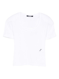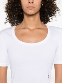 scoop-neck cotton T-shirt Highlights - White - Scoop neckline - Short sleeves - Small logo embroidery - Cotton material Imported Composition Cotton 100% SIZE & FIT Model measurements Height 5 ft 10 in(1.79 m) Bust/Chest 31.88 in(81 cm) Hips 35.43 in(90 cm) Waist 23.62 in(60 cm)