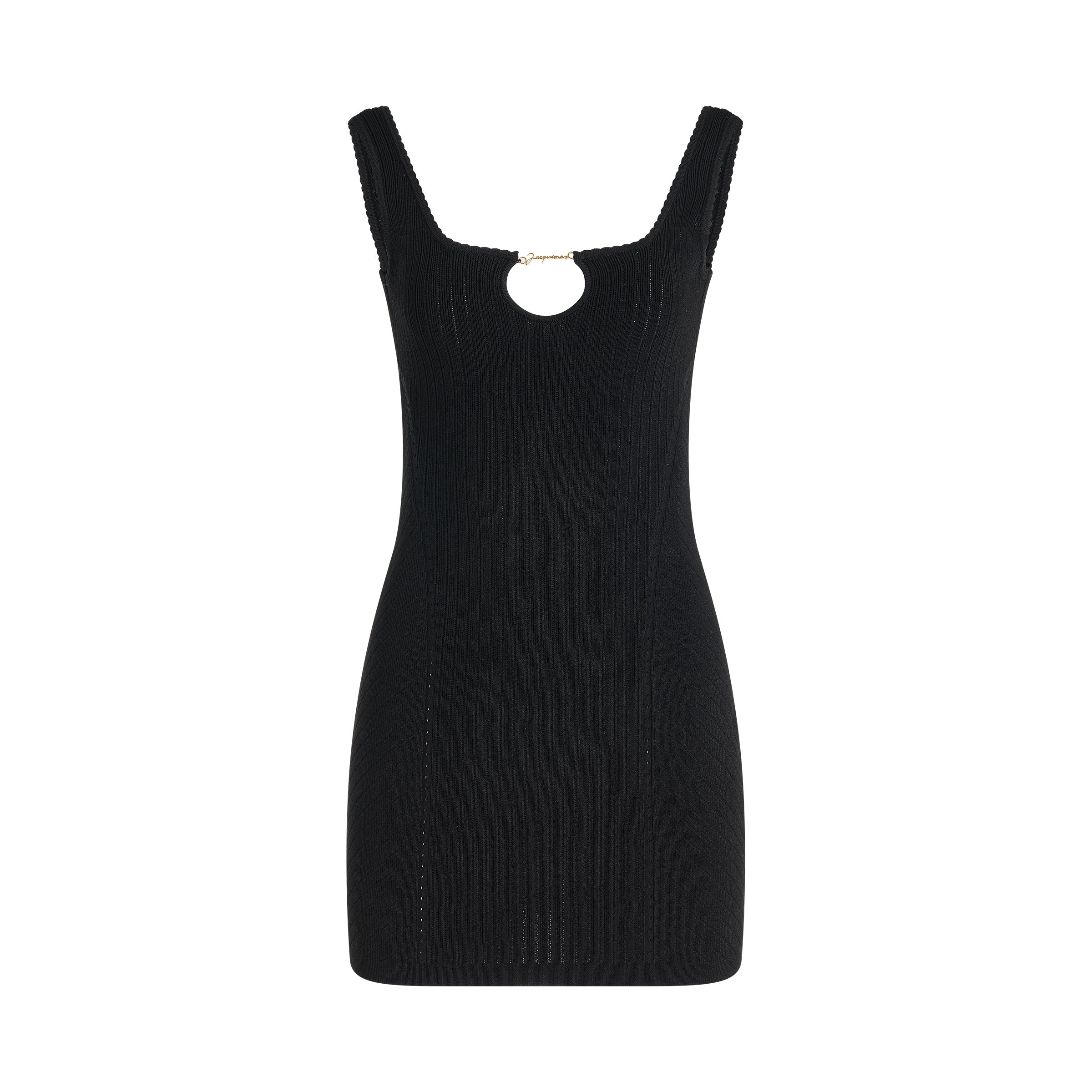 Crafted with premium materials, this dress offers both comfort and style. With its figure-flattering fit and timeless design, you'll feel confident and empowered. Elevate your look with this must-have piece. - Composition: 88% Viscose, 12% Polyester - Stretch-design - Scallop scoop neck - Sleeveless - Gold-tone logo plaque at the chest - Cut-out detailing - V-back - Internal logo tag - Thigh-length - Straight hem SKU: 241KN3552355 990