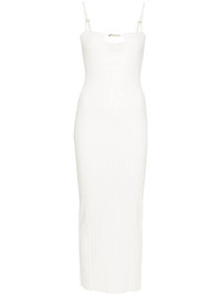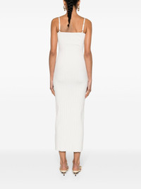 Sierra ribbed midi dress This ribbed knit midi dress by Jacquemus offers an elegant silhouette. It's designed with a square neckline and keyhole detail, elevated with the label's signature gold-tone logo plaque. Adjustable spaghetti straps allow for the perfect fit. Highlights - Off-white - Ribbed knit - Gold-tone logo plaque - Keyhole neck - Adjustable spaghetti straps - Bodycon design - Straight hem - Unlined Made in Italy Composition Viscose 88%, Polyester 12% SIZE & FIT Model measurements Height 5 ft 10 in(1.78 m) Bust/Chest 33.07 in(84 cm) Hips 36.61 in(93 cm) Waist 24.8 in(63 cm) Measurement HIPS 30.7 in(78 cm) LENGTH 50.78 in(129 cm) WAIST 24.8 in(63 cm) FittingInformation Designed for a slim fit that sits just away from the body offering a close yet comfortable fit Made with a midweight knit, this piece offers some stretch This piece fits true to size – take your usual size