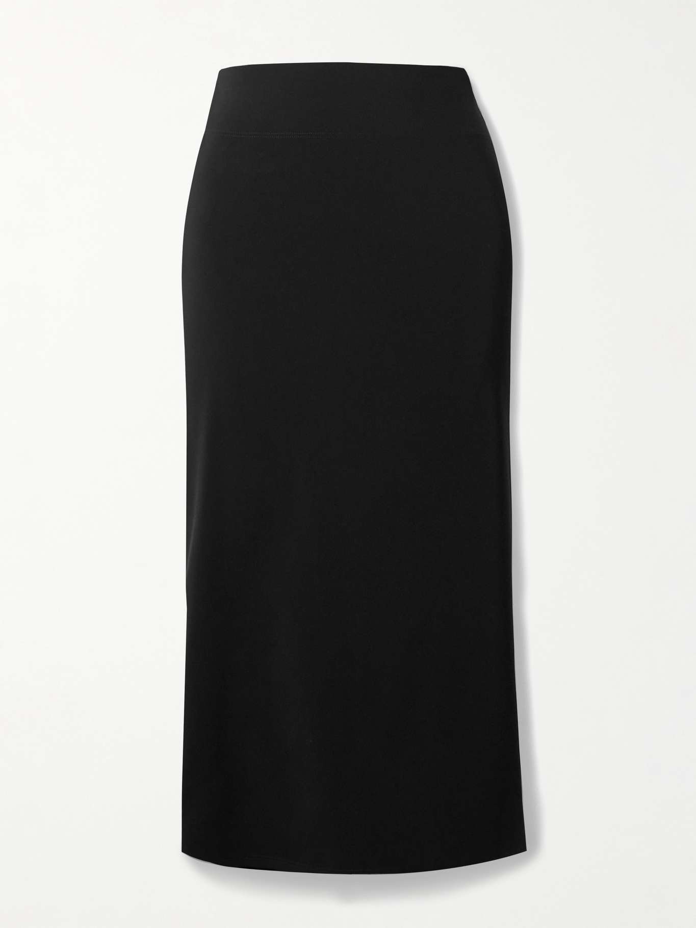 EDITORS'NOTES Jacquemus often plays with form, blending sculptural silhouettes with unexpected details. This midi skirt is made from crepe-jersey that gently skims the frame and is draped at the reverse to create a softly pleated train. SIZE & FIT Model measurements: - Fits true to size, take your normal size - Midi-length, designed to be worn at the waist - Mid-weight, non-stretchy fabric - Model is 180cm/ 5'11" and is wearing a FR 36 - Bust: 85cm/ 33.5" - Waist: 62cm/ 24.5" - Hip: 88cm/ 34.5" DETAILS & CARE - Black crepe-jersey - Concealed hook and zip fastening at side - 96% viscose, 4% elastane - Dry clean