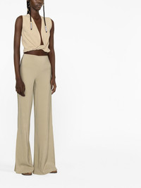 Le Pantalon Soffio flared trousers Jacquemus' trousers riff on distinctive 1970s styles. This beige pair is woven with silk threads for lightness and extends to a flared-cuff shape. Highlights - Beige - Mid-rise - Flared cuffs Imported Composition Viscose 75%, Silk 21%, Spandex/Elastane 4% SIZE & FIT Model measurements Height 5 ft 10 in(1.79 m) Bust/Chest 31.1 in(79 cm) Hips 35.03 in(89 cm) Waist 24.01 in(61 cm) Measurement INSIDE LEG 35.43 in(90 cm) HIPS 33.07 in(84 cm) WAIST 25.98 in(66 cm) FittingInformation This piece fits true to size. We recommend you get your regular size Designed to be fitted at the waist and hips, loose over the leg Made with a mid-weight stretch fabric Washing instructions Dry Clean Only