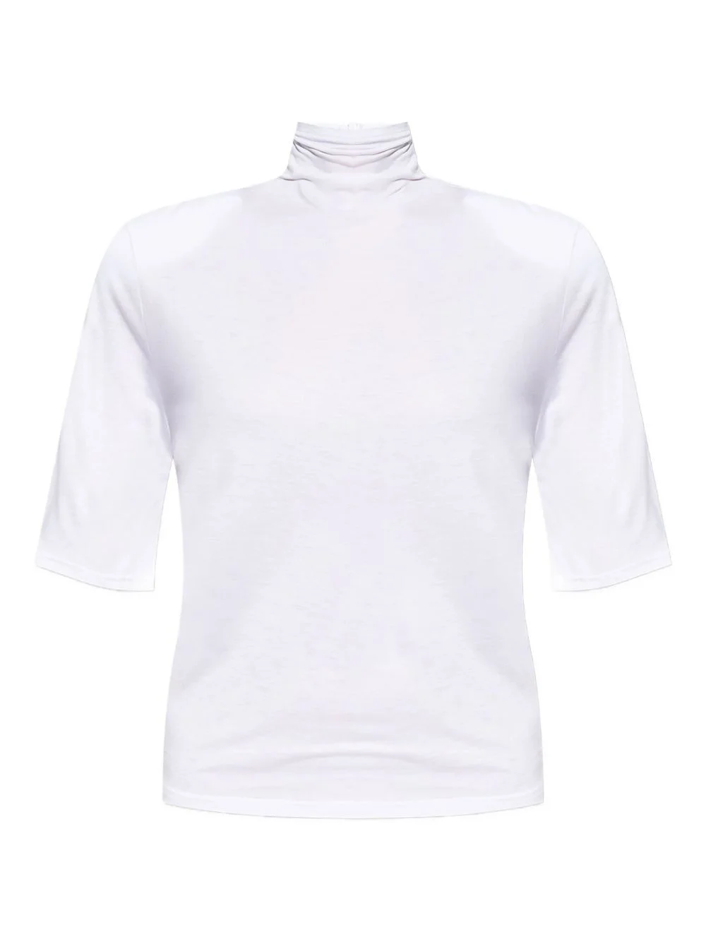 high-neck top Highlights - White - High neck - Half-length sleeves Imported Composition Viscose 88%, Silk 12% Washing instructions Read Manufacturer Guidelines
