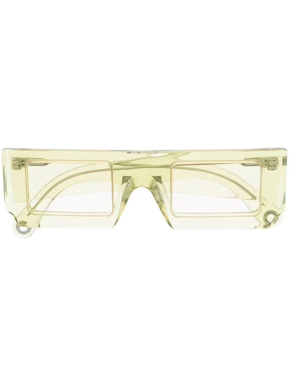 square frame sunglasses pale green square frame green tinted lenses straight arms oversize arms curved tips All glasses from FARFETCH are sold as non-prescription frames. These glasses come with a protective case. Imported Composition Acetate 100% SIZE & FIT Measurement Arm Length 5.9 in(15 cm) Bridge Width 0.55 in(1.4 cm) Lens Diameter 1.77 in(4.5 cm) Total Width 5.51 in(14 cm)