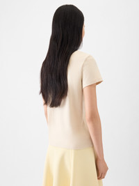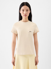 Grosgrain logo t-shirt - Fitted shape - Stretch cotton - Ribbed crew neck - Short sleeves - Embroidered grosgrain logo on chest - Above the hip length The model is 177cm and wears a size XS 100% Cotton Made in Portugal Ref. TSW00550AJ00029131