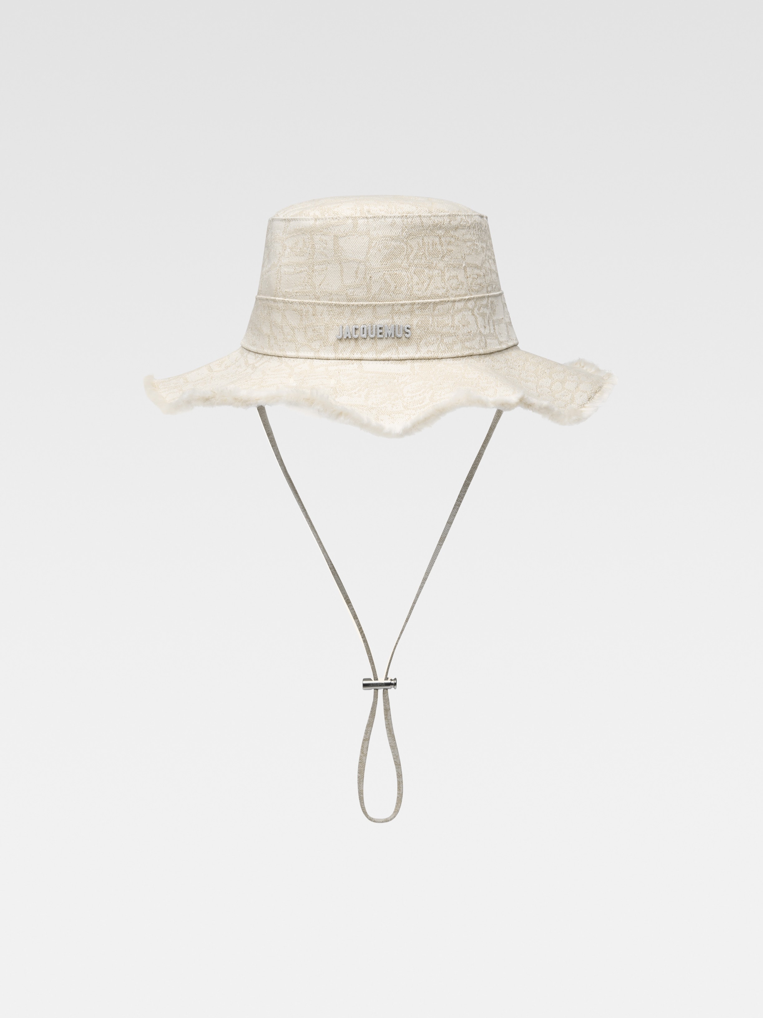 Frayed bucket hat - Bucket hat in crocodile-effect cotton jacquard - Silver metal logo - Long, adjustable strap - Topstitched visor with frayed edge 100% Cotton Made in Bulgaria Ref. 213AC002-1731-1JK