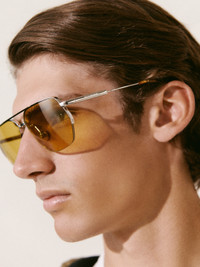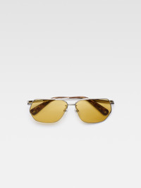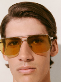 LA CROISIERE Flat aviator sunglasses - Anodised metal sunglasses - Slim metal frame and acetate temple tips - Tinted lenses - UV 400 protection - Embossed logo on outside temple - Printed logo on the inside temple - Circle and square stainless steel rivets 100% Stainless steel Made in France Ref. 255AC751-5121-980