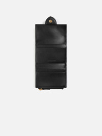Flap card holder - Smooth leather structured wallet - Magnetic flap tab closure - Back patch pocket - Four interior card slots - Interior zipped pocket - Interior slit pocket - Gold metal logo and hardware - Fully lined in cotton - 9.5 x 7.5 cm 100% Cow leather Made in Italy Ref. SLW00119AC01C01990
