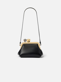 Small clasp bag - Small pouch bag in nappa leather - Removable thin shoulder strap - Contrast Rond-Carre clasp closure in silver and gold metal - Interior card pocket - Fully lined in cotton - 20 x 13.5 x 13 cm Each leather is unique and has been carefully selected by our team. To maintain the original condition of this item, we recommend to avoid direct and over-exposure to light and contact with cosmetics, water or heat. We advise to store this item into the dust bag in a dry place. 100% Lamb leather Made in Italy Ref. BAW00451AC27L14990