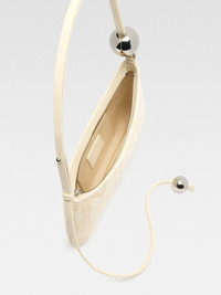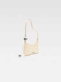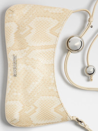 WINTER RETREAT Beaded shoulder bag - Structured bag in python-embossed leather - Adjustable pearl-embroidered leather shoulder strap with metal buckle - Contour piping - Inside patch pocket - Silver logo and metalwork - Zipper closure - 27 cm x 10.5 cm 100% Goatskin / Lining: 100% Cotton Made in Italy Ref. 231BA057-3224-120
