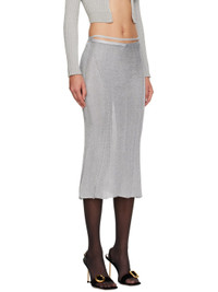 Knit viscose-blend skirt. · Perforations and metallic thread detailing throughout · Crystal-cut logo hardware and adjustable strap at waist Part of the Guirlande collection. Supplier color: Silver 70% viscose, 30% polyester. Made in Bulgaria 241553F092000