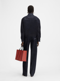 LA CROISIERE Zipped denim jacket - Oversized fit - Dark navy cotton denim - Pointed collar - Long sleeves - Contrast bartacks - Zipper closure with denim puller - Laser printed signature logo - Side welt pockets - Buttoned cuffs with corozo buttons - Back yoke with embroidered patch The model is 179cm and wears a size 40 100% Cotton / Lining: 65% Polyester - 35% Cotton Made in Italy Ref. OUW00100AD00036390