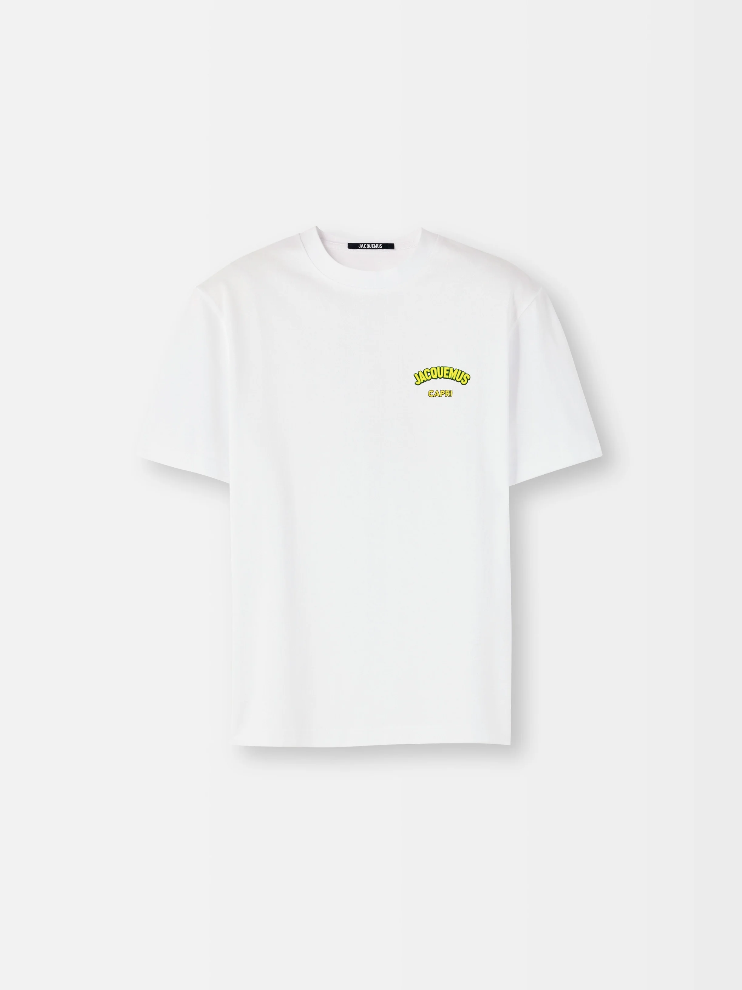 Logo t-shirt - sold exclusively online and in our Capri pop-up store - Relaxed fit - Round neck and short sleeves - JACQUEMUS logo printed on chest - "Capri" embroidery - Lemon motif printed on back Men : The model is 1m89 and wears a size M Women : The model is 1m79 and wears a size S 100% Cotton Made in Portugal Ref. TSM00572AJ002261LF