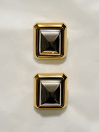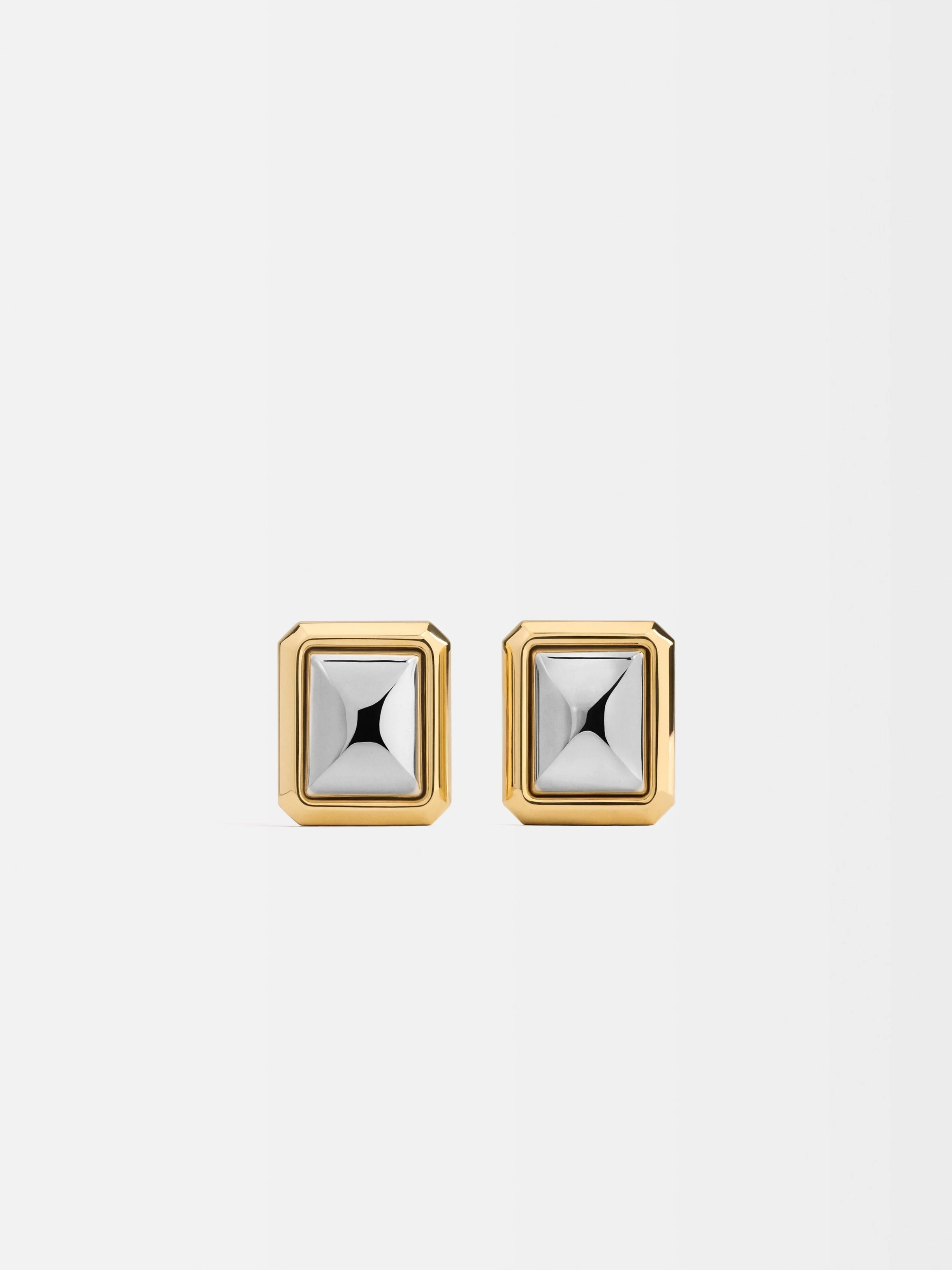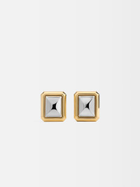 Large square earrings - Large earrings in silver and gold-toned brass - 3-D geometric shape - Smooth finish - Circle and square push-backs with engraved logo 100% Brass Made in Italy Ref. JWW00761AOT4005979