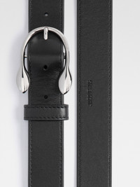 LA CROISIERE Signature Chiquito buckle belt - Smooth leather belt - Thin silver metal buckle inspired by Le Chiquito - Topstitching - Five adjustable lengths - Engraved logo - Width: 3cm 100% Cowskin Made in Italy Ref. 255AC346-3000-99S