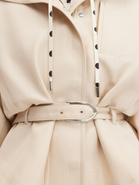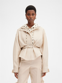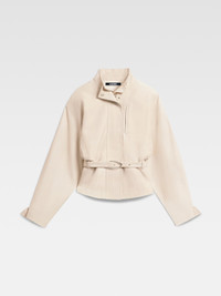 LA CROISIERE Belted jacket - Straight fit - Stand collar - Long sleeves - Horizontal zipped chest pocket - Zipper closure with snap button placket - Adjustable sleeve cuffs with press studs - Removable buckled belt - Belt loops - “J” locker loop - Box pleat - Fully lined The model is 180cm and wears a size 34 63% Polyester - 37% Virgin wool / Lining: 52% Viscose - 48% Cotton Made in Bulgaria Ref. 251JA082-1629-130