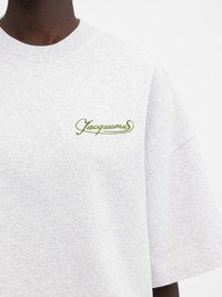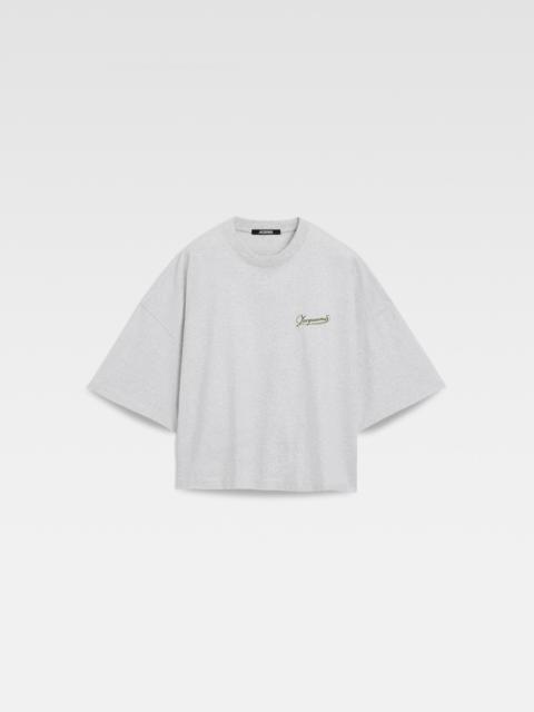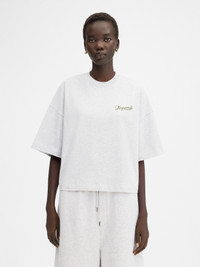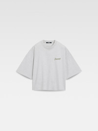 Boxy embroidered t-shirt - Cropped oversized fit - Ribbed crew neck - Contrast embroidered signature 50's logo - Elbow-length sleeves The model is 179cm and wears a size M 100% Cotton Made in Portugal Ref. 251JS216-2102-9CN
