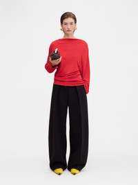 LA CROISIERE Open-back top - Relaxed fit - Fluid crepe jersey - Boat neckline - Long sleeves - Draped waist - Draped open back The model is 178cm and wears a size XS 82% Viscose - 18% Polyamide Made in Portugal Ref. 251TO121-1026-471