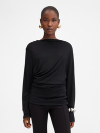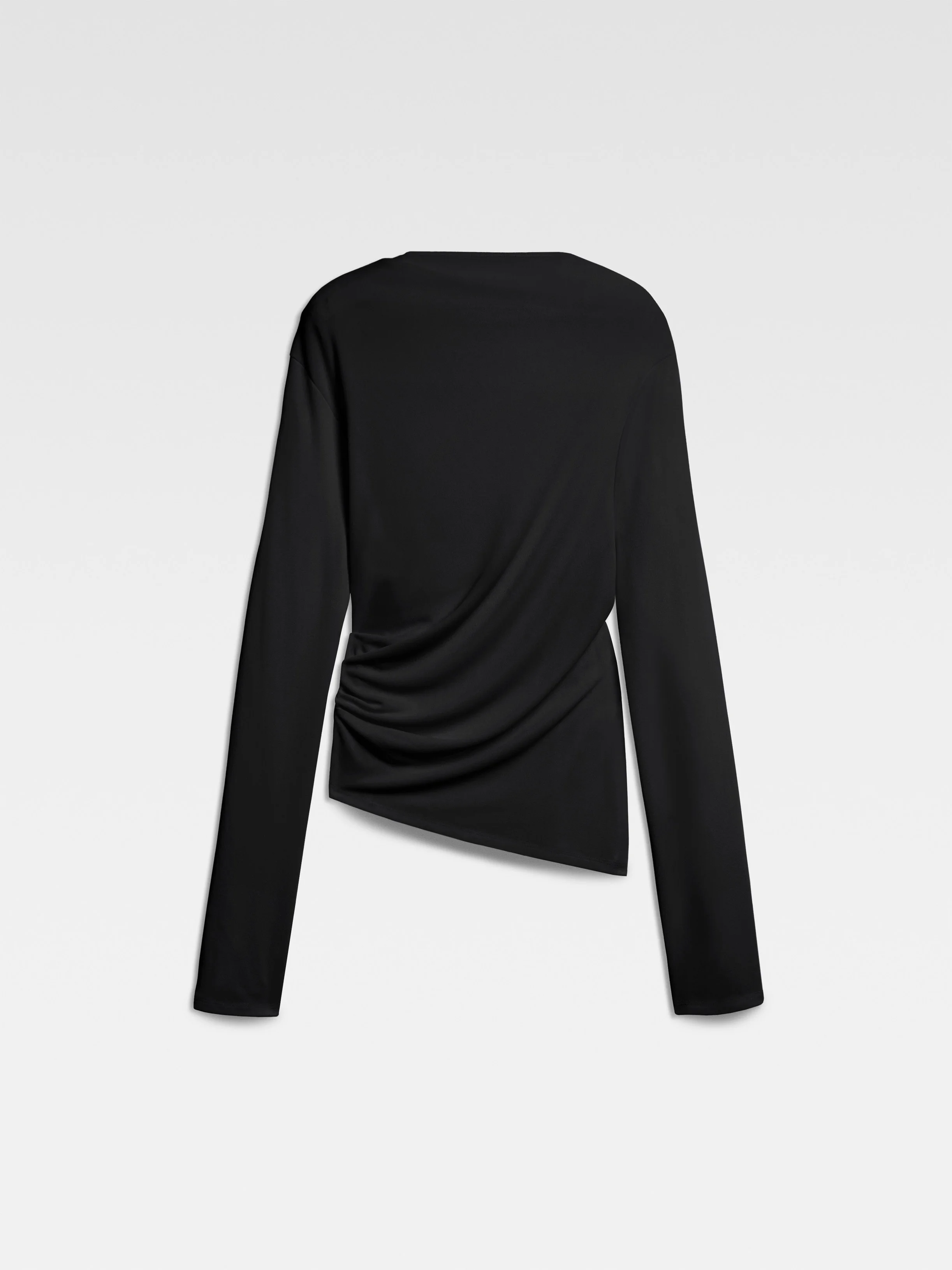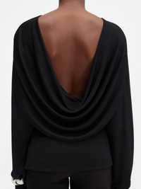 LA CROISIERE Open-back top - Relaxed fit - Fluid crepe jersey - Boat neckline - Long sleeves - Draped waist - Draped open back The model is 177cm and wears a size XS 82% Viscose - 18% Polyamide Made in Portugal Ref. 251TO121-1026-990