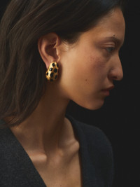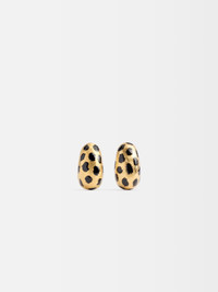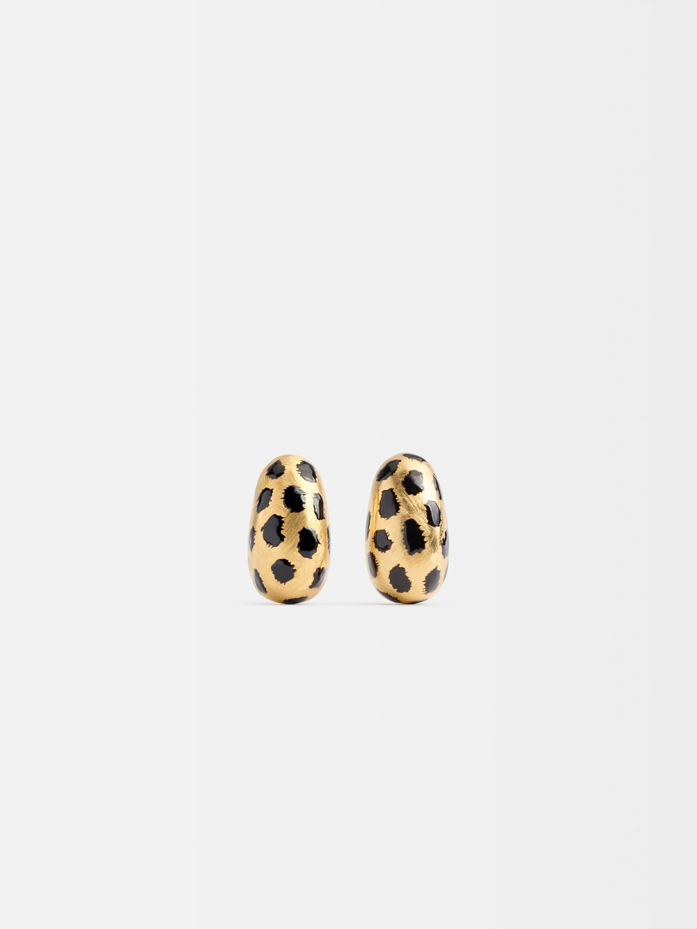 Oval leopard print earrings - Earrings in gold and black toned brass and enamel - Convex oval shape - Brushed finish with leopard print - Circle and square push-backs with engraved logo 100% Brass Made in Italy Ref. JWW00764AMMC001278