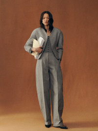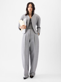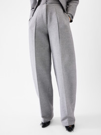 Wide curved pants - High-rise - Bonded, textured tailoring wool - Grown on waistband - Zip fly with hook and button - Side-seam pockets - Stitched pleats - Wide curved leg - Tapered ankle The model is 179cm and wears a size 34 71% Cotton - 29% Virgin Wool / Lining: 55% Cotton - 45% Polyester Made in France Ref. PAW00614AW00657910