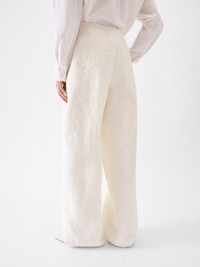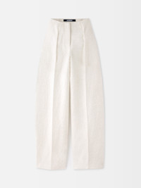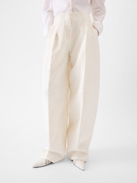 Wide curved pants - High-rise - Lightweight tweed - Grown-on waistband - Zip fly with hook and button - Side-seam pockets - Stitched pleats - Wide curved leg - Tapered ankle The model is 178cm and wears a size 34 65% Polyester - 18% Acrylic - 10% Polyamide - 7% Silk / Lining: 55% Cotton - 45% Polyester Made in France Ref. PAW00614AW006361KD