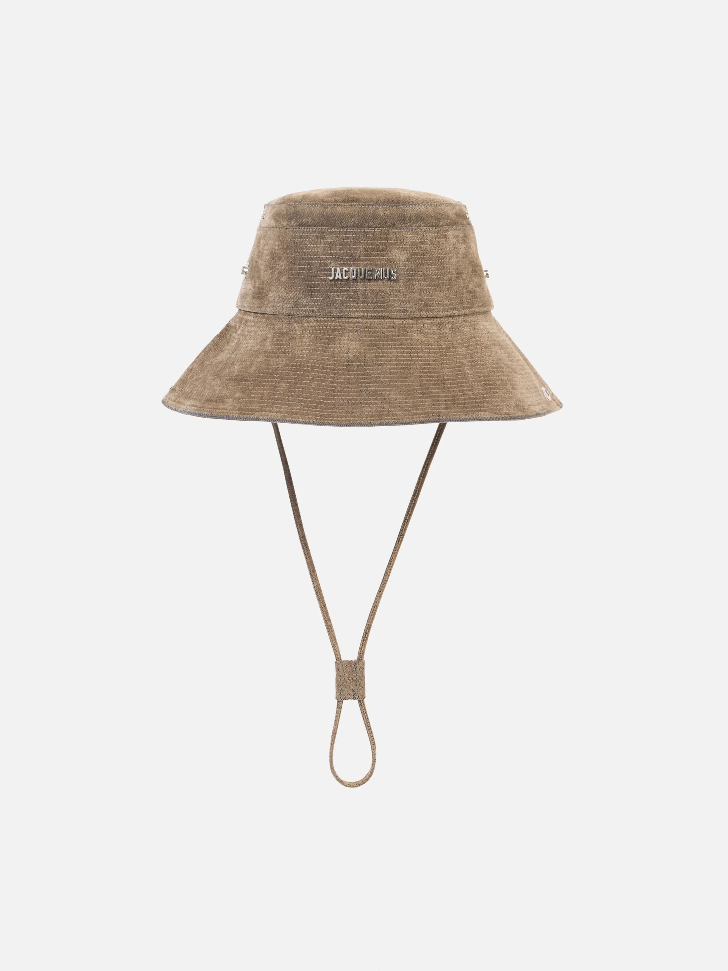 Stitched bucket hat - Bucket hat in flocked velour denim - Long, adjustable strap - Topstitched visor - Side snaps - Rond-carre ventilation grommets - Rond-carre loop drawstring at back - Silver metal logo - Lined in cotton 100% Cotton / Lining: 100% Cotton Made in Bulgaria Ref. ACU00721AD00051560